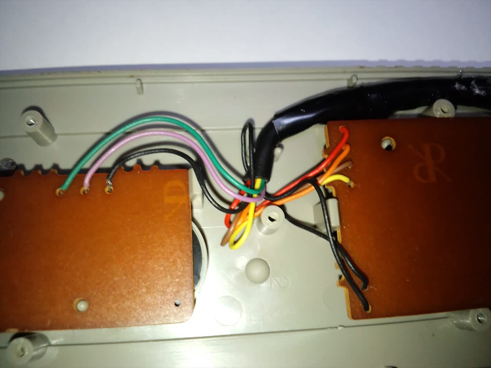 配線をめくって、別の銅線でジャンプさせて、ビニールテープで止めてるだけ...