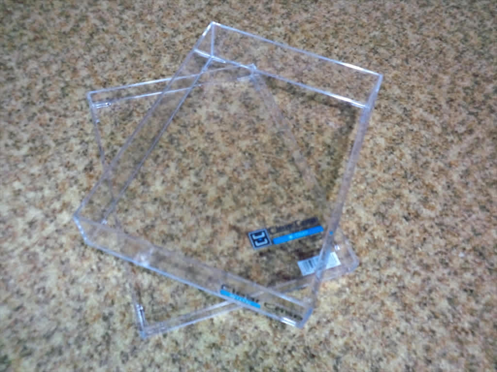 仕方ないので、買ってきたケースは100均ならどこにでも置いてそうなクリアケースを2種類