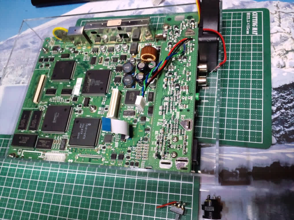 結構ギリギリサイズで、カードスロットカバーだけメイン基盤から取り外しました。