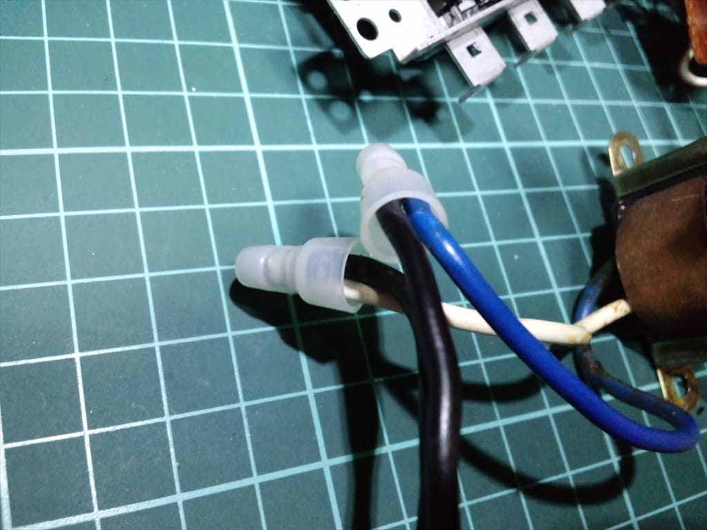 コンセント部分の仮接続も、純正に近い形の物にして作業完了。