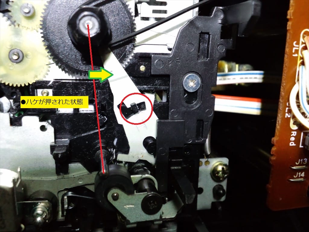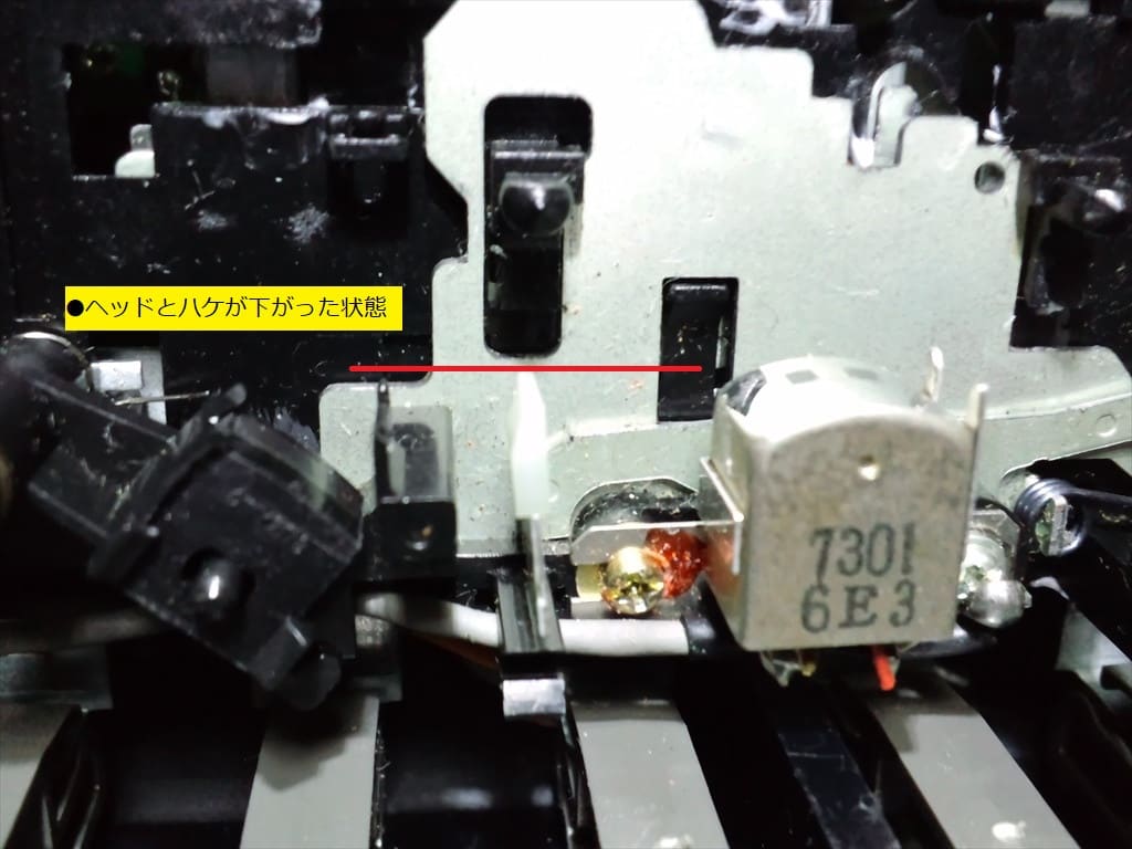 ヘッドが下がっている時は左写真の様にハケも下がっているのですが、再生を押すとヘッドと一緒にハケが上がります。