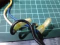 電源コードが圧着されてしまっているので、一旦解体して切り離しました。