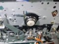 外側のプーリにはモーターからのベルトがかかっていて、内側のプーリーが巻き取り軸に繋がるベルトがかかります。