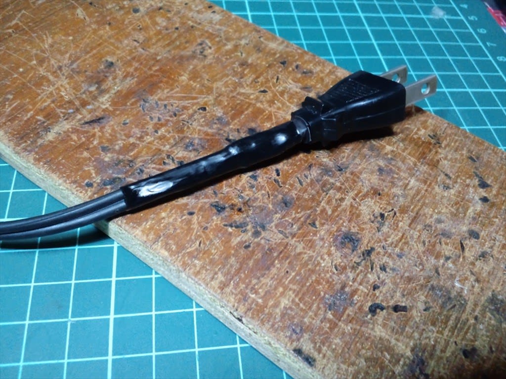 順番に場所を特定していくと、先端のコンセント側の根元がどうも断線しかかってるような感じ。